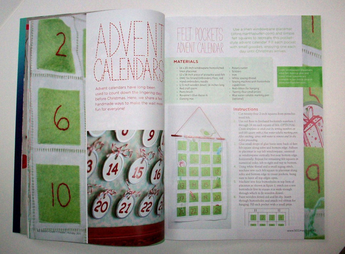 I was of course drawn to the fabric projects…big surprise for all of you I am sure. Look at this Advent Calendar…how sweet. I love the vibrancy of the green felt but wouldn’t this be gorgeous in fabric too?