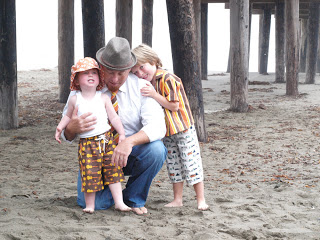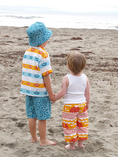 My husband, Jason and our kiddos, sporting Beach Mod by Monaluna for Birch Fabrics Organic.