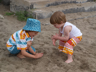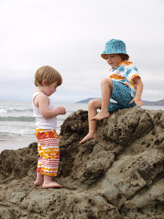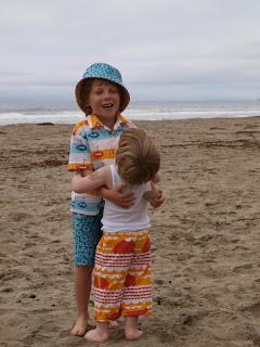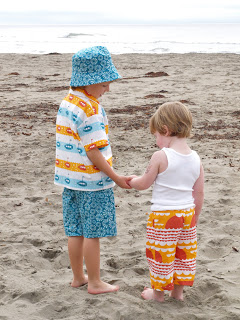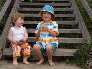 My Boys, Keaton and Anderson wearing some adorable clothing made from the Marine Collection by Dan Stiles for Birch Fabrics 100% Organic.