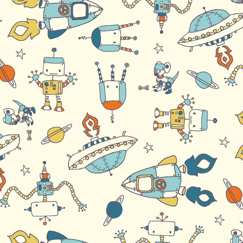 Introducing our second Spring 2013 release, due this March, Robotic by Rebekah Ginda. This is Rebekah’s second collection for Birch Organic Fabrics. You might be familiar with Rebekah’s first gorgeous collection, Scamper. Rebekah brings her talent to Birch Fabrics all the way from Germany! When Rebekah first contacted us, we were so taken with her darling illustrations, we got right to work with her on Scamper. Her designs can be found on everything from Sandals to Bedding! Check out Rebekah’s beautiful website here!